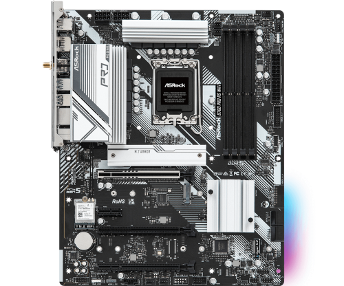 Intel B760, LGA1700, 4x DDR5 max. 192GB, 1x PCIe5.0x16, 1x PCIe4.0x16, 1x PCIe3.0x16, 1x PCIe3.0x1, 4x SATA3, 3x M.2, RAID, 4x USB 2.0, 6x USB 3.2 Gen1, 3x USB 3.2 Gen2, 1x 2.5 Gigabit, HDMI, DP