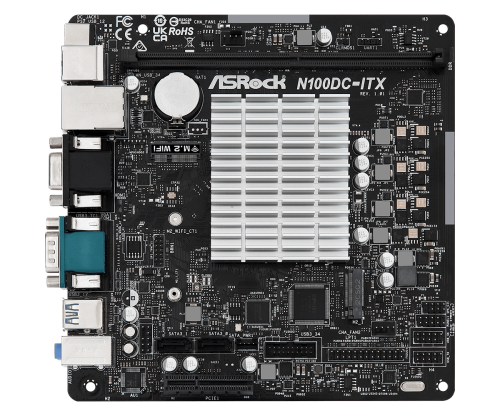 Integrált Intel Quad-Core N100 processzor, 1x DDR4 max. 32GB, 1x PCIe3.0x4, 2x SATA3, 1x M.2, 8x USB 2.0, 4x USB 3.2 Gen1, 1x Gigabit, DSUB, HDMI