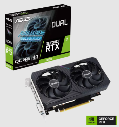 NVIDIA GeForce RTX 3050, GPU/BOOST: 1552MHz/1852MHz, MEM: 8GB GDDR6, 128bit, 14Gbps, CUDA 2560, 1x DVI, 1x HDMI, 1x DP, 2x ventilátor, 2 slot