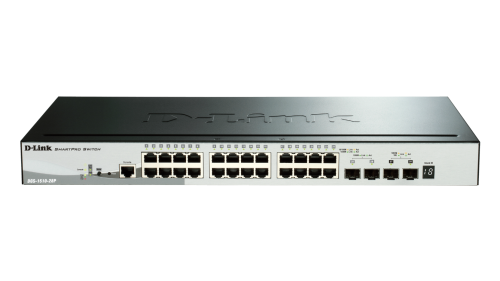 28-Port Gigabit Stackable PoE Smart Managed Switch including 2 10G SFP+ and 2 SFP ports – 24 x 10/100/1000Mbps Auto-Negotiating Ports – 2 x Mini-GBIC SFP ports – 2 x 10G SFP+ ports – Physical Stacking up to 6 units per stack. Stacking Bandwidth of 40Gb. Topology Linear or Ring. – Support IEEE 802.3af and 802.3at (Support legacy mode) – Up to 15.4W per port (PoE), Up to 30W per port (PoE+) – 193W total PoE power budget – Auto discover the connection of PD and immediately provides power – AT: Auto disable port if the output power is over 31.2W(+/-2%) – AF: Auto disable port if the output power is over 16.2W(+/-2%) – Auto disable port if the port overload detection range (ICUT parameter) is 50V~57V. – D-Link Green 3.0, 802.3az – Virtual stacking – Static route – IPv6 Management/Ready Logo – Half-/Full-Duplex, auto-negotiation, Auto MDI/MDIX – IEEE 802.3x Flow Control – 802.3ad Link Aggregation – Asymmetric VLAN, Auto Voice VLAN, GVRP – 802.1p priority queues – MAC/IP filtering – MAC/IP-